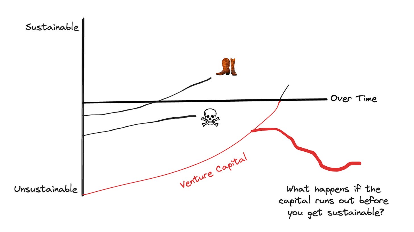 Venture capital is meant to enable companies to do unsustainable things in pursuit of scale that will eventually enable sustainability. But what if sustainability never comes?