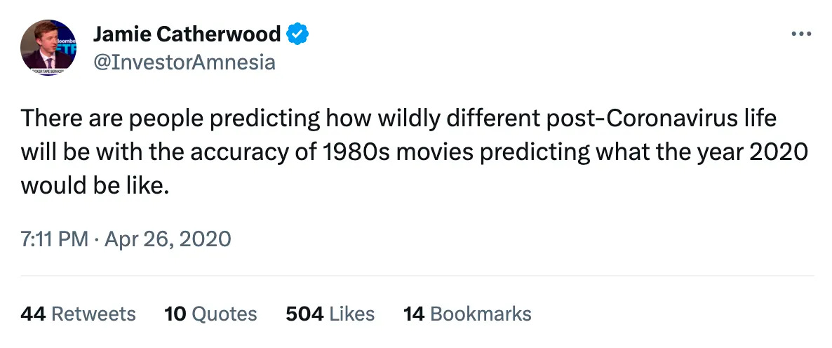 But like... why not? Did anyone really, genuinely believe that life would forever be trapped lockdown-style? I think often of this tweet from early in 2020:
