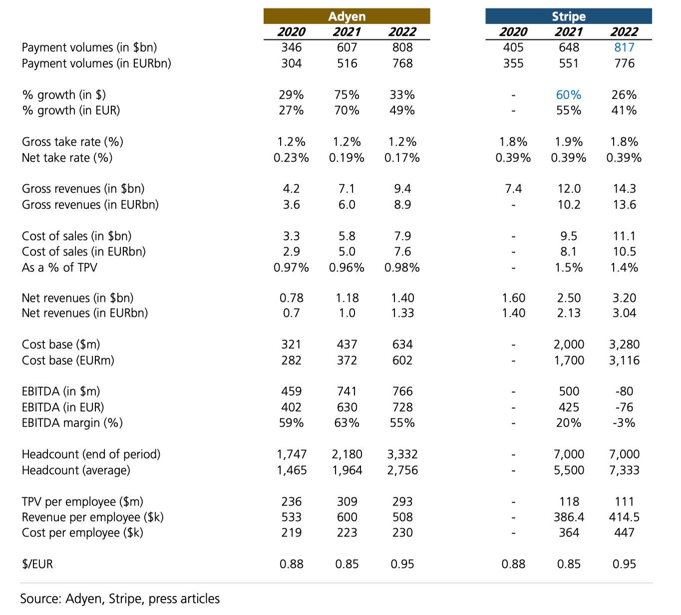 But recently I saw a side-by-side comparison of Stripe vs. Adyen that stuck with me:
