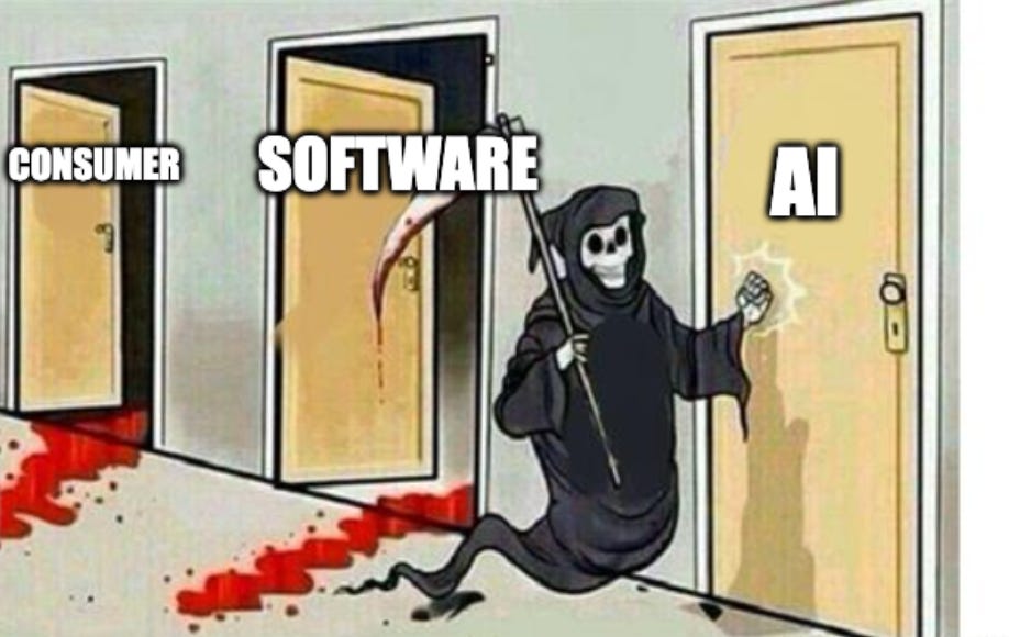 “Consumer is dead.” “Software is dead.” “AI is dead.” That’s the morbid addiction talking. What is instructive is not perpetual pessimism. The most informative element of this dynamic is acknowledging the obstacles that exist in deploying the latest and greatest technology effectively, and leaning into that messy process.