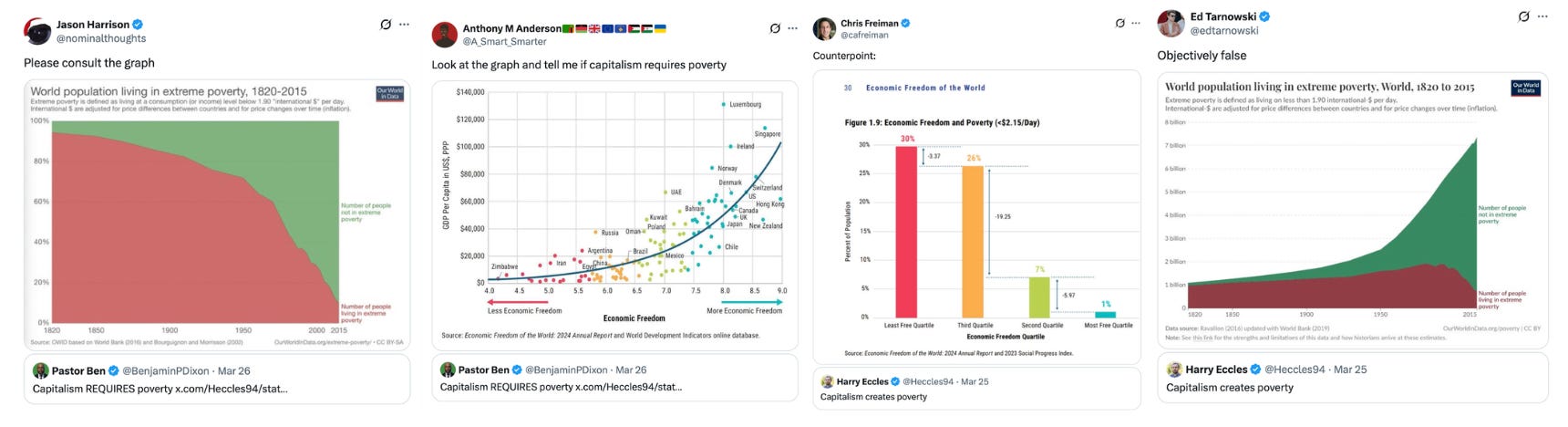 There was a series of tweets this week, the first saying “capitalism creates poverty,” and then a retweet doubling down and saying, “capitalism requires poverty.” The replies had dozens of responses demonstrating just how untrue those statements are.